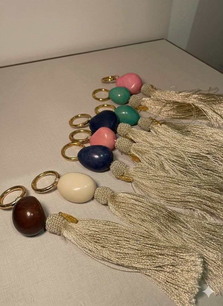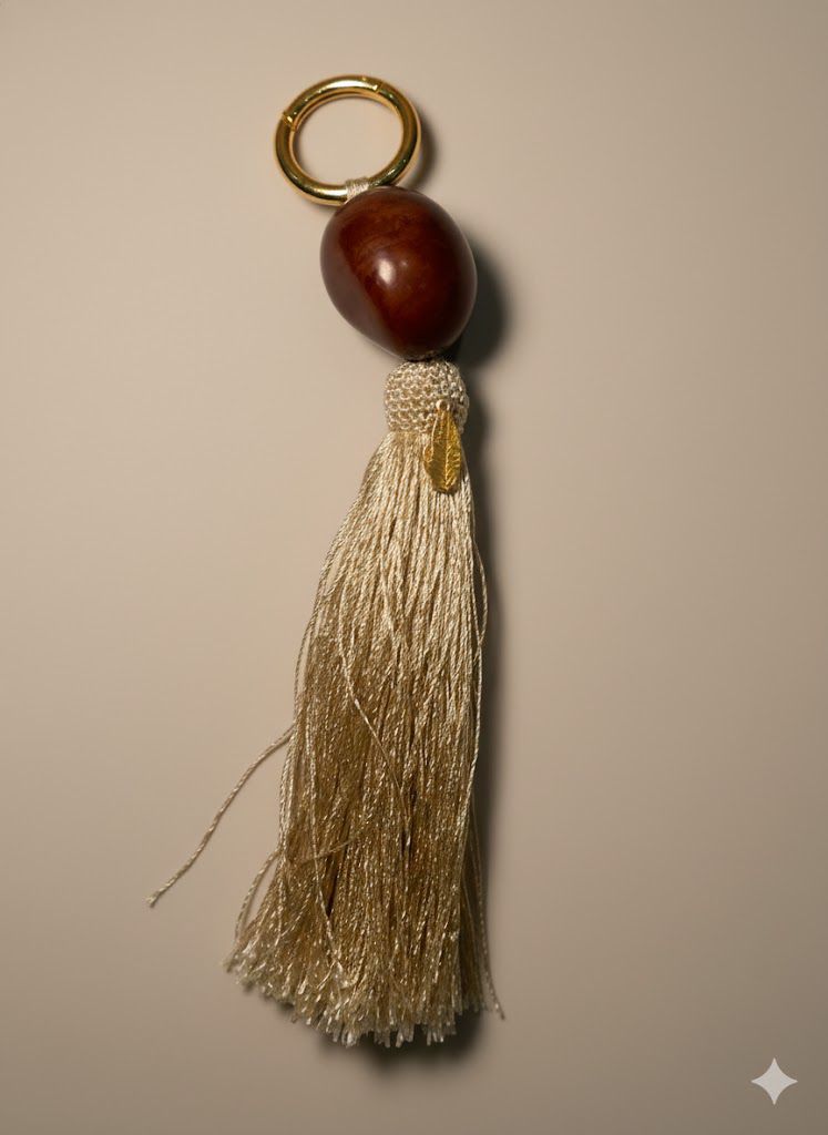 Charms artesanales elaborados con detalle y cuidado, pensados para aportar color, textura y personalidad a cada pieza. Cada llaverito combina una tagua de acabado suave, aros metálicos y flecos delicados, creando un accesorio versátil y lleno de encanto artesanal.