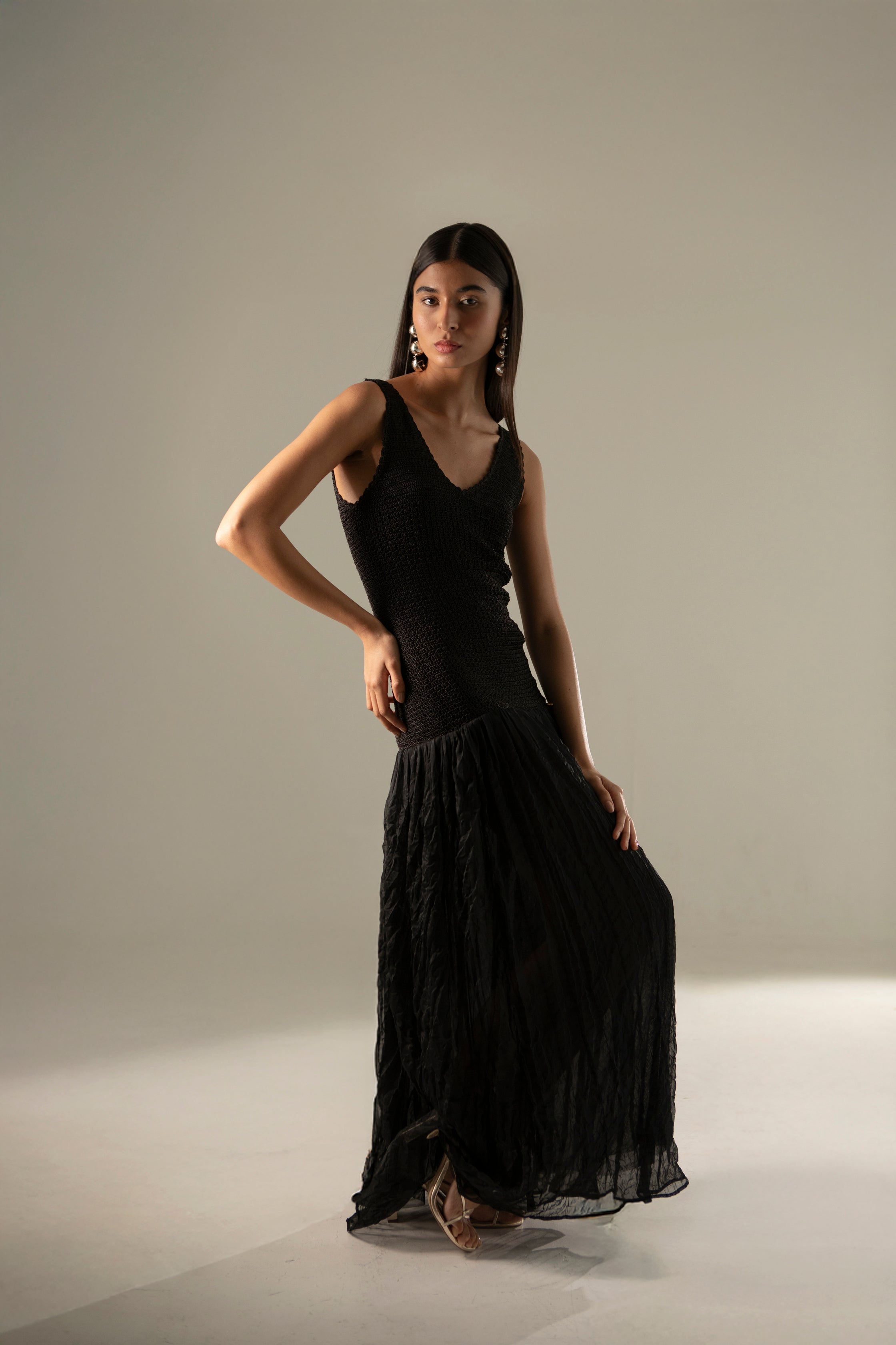 Vestido largo y fluido con silueta holgada, diseñado para brindar libertad de movimiento. Tejido a mano con una tela liviana y transpirable, ideal para climas cálidos. Su caída suave y detalles sutiles lo hacen perfecto tanto para días relajados como para eventos especiales, con una elegancia natural.